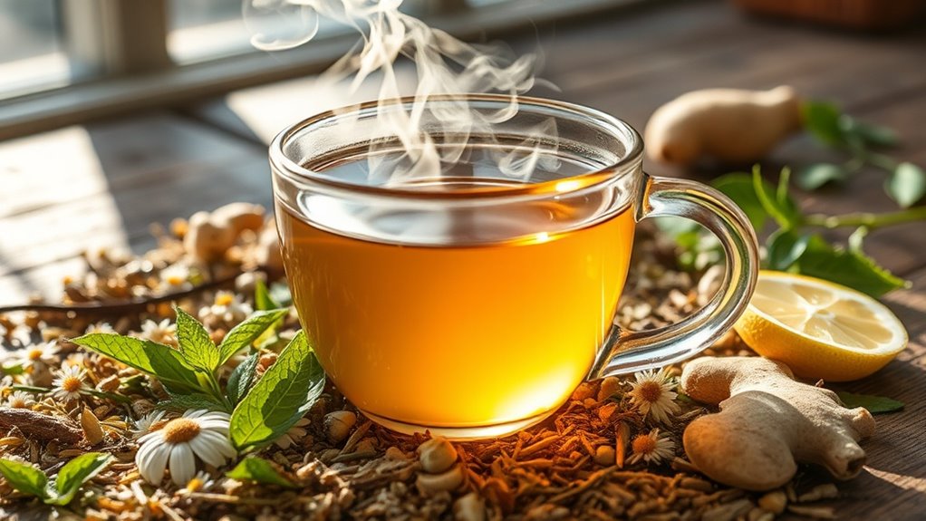 Imagine starting your day with a cup of tea that not only awakens your senses but also boosts your energy without the jitters of caffeine. Herbal teas like rooibos, ginseng, and peppermint offer invigorating benefits that can enhance your focus and vitality. Each blend has its unique properties that promote overall wellness. Curious about how to brew the perfect cup or which ingredients can amplify the energizing effects?